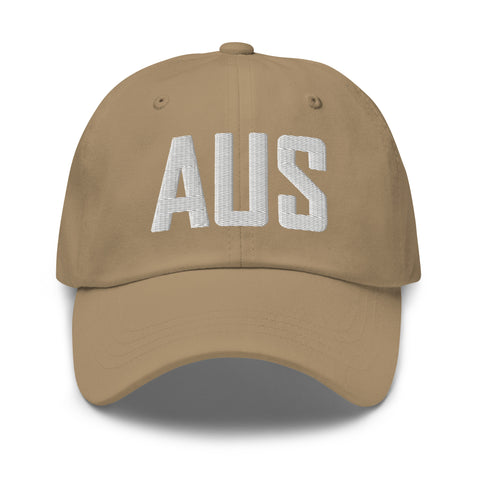 AUS Airport Code Embroidered Dad Hat | White Thread