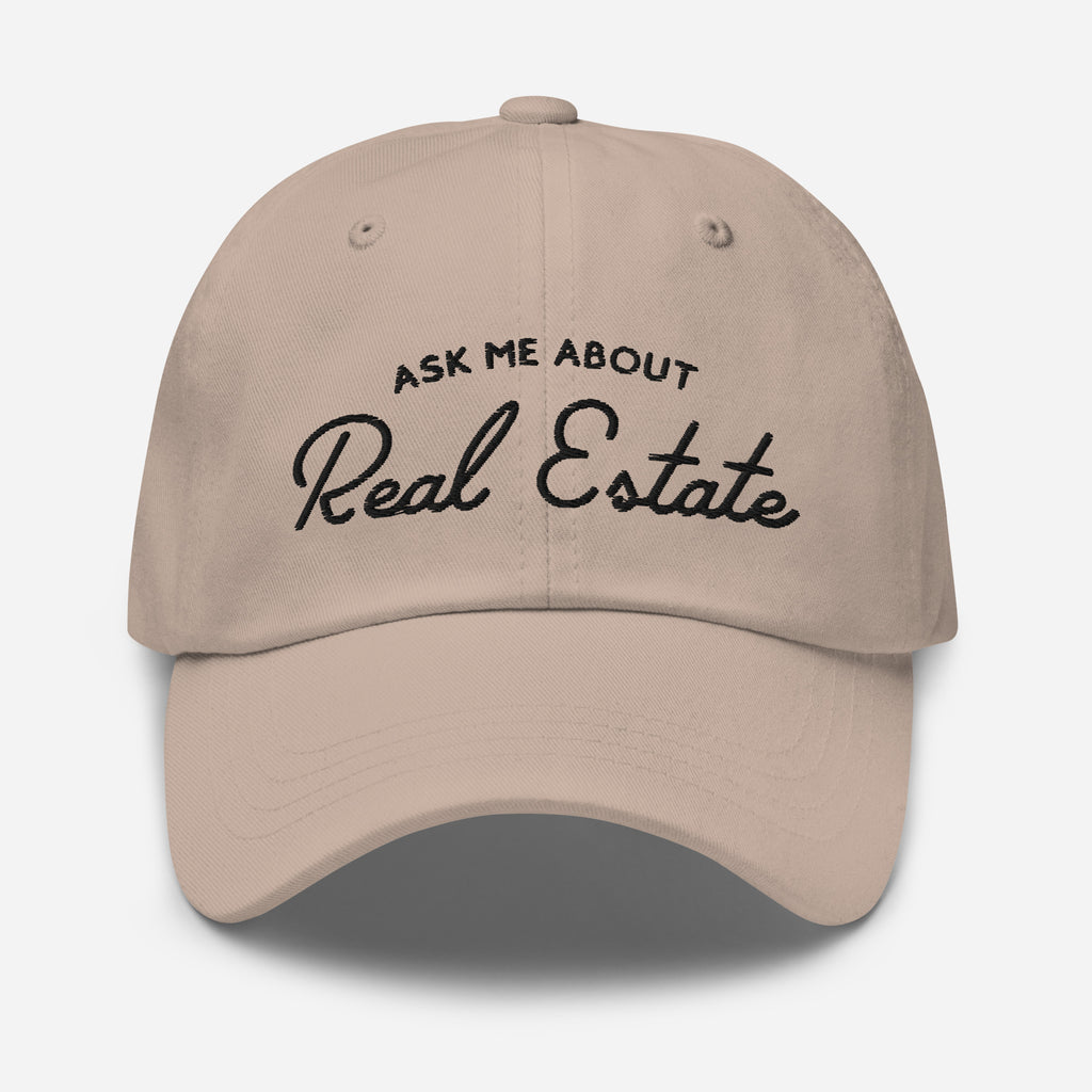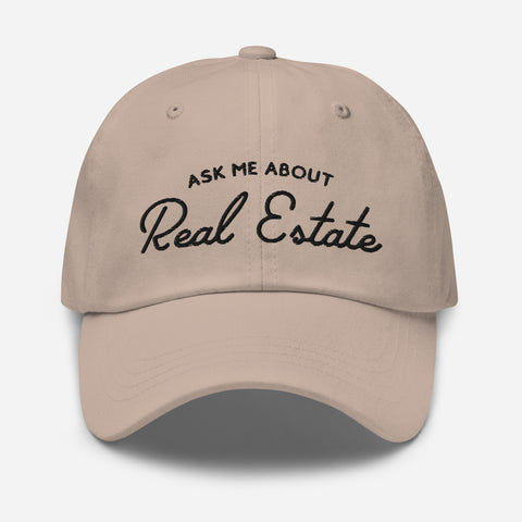 Ask Me About Real Estate Embroidered Dad Hat | Black Thread